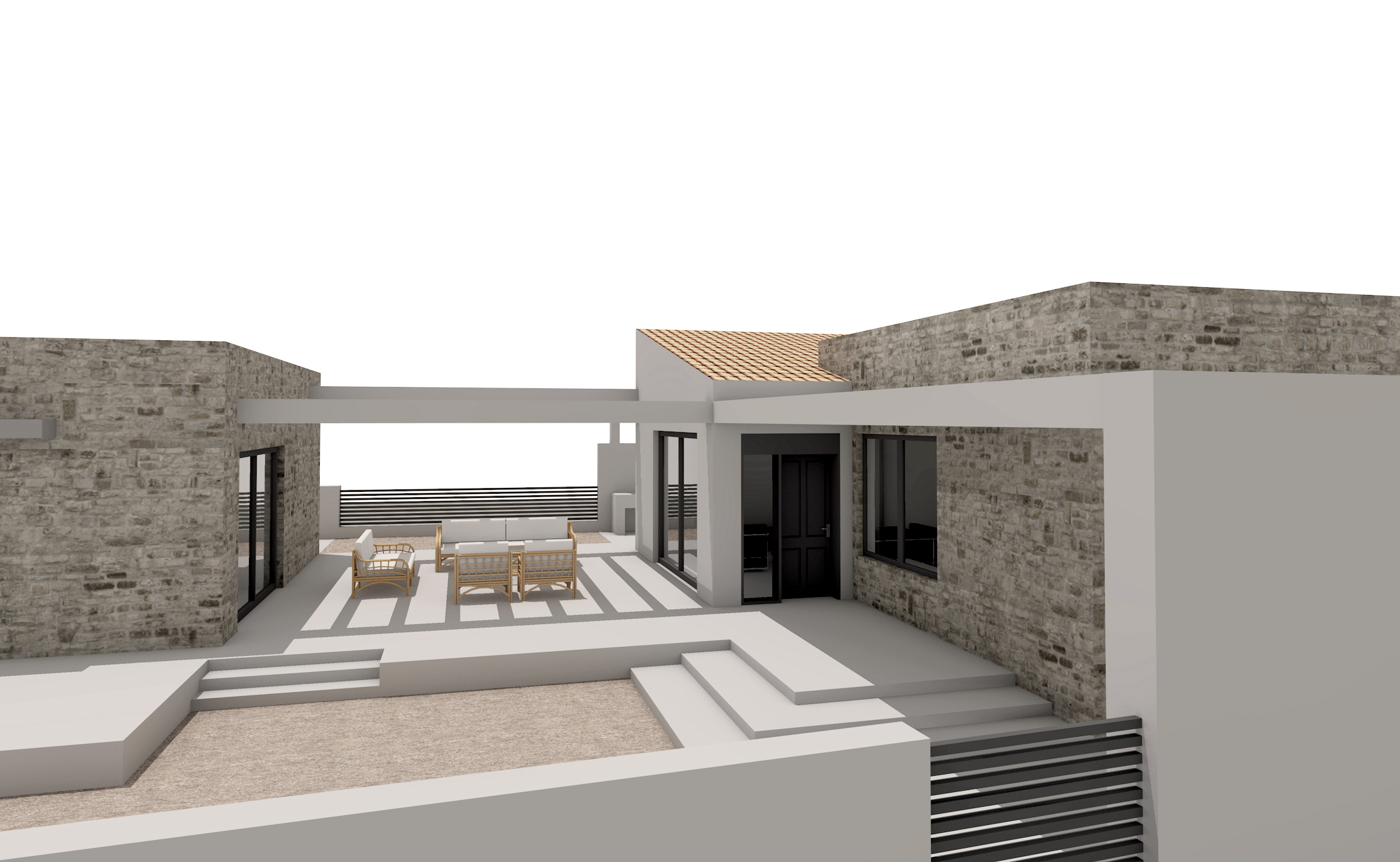 Basic client’s desire was the combination of a traditional stone house with strong elements of modern architecture.